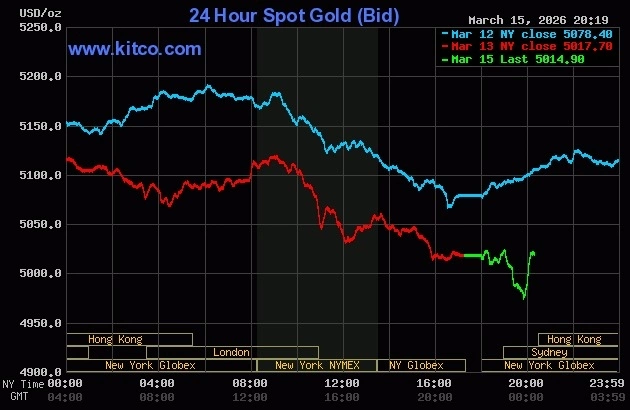 Mở cửa phiên giao dịch 16/3, giá vàng thế giới giao ngay có thời điểm giảm hơn 40 USD xuống 4.968 USD một ounce. Giá hiện phục hồi lên 5.020 USD.